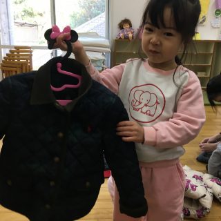 上着を着たり、脱いだり。ハンガーの扱いも上手になってきました!!