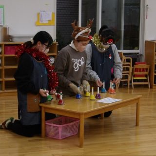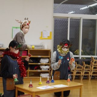 初めに先生たちが出し物を披露してくれました。ミュージックベルを使って