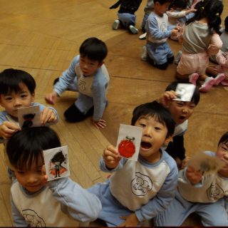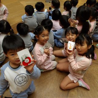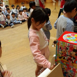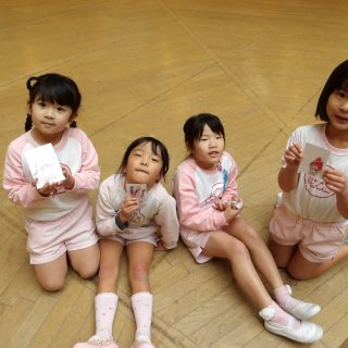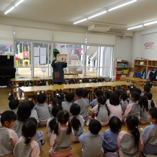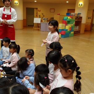紙芝居を読んでもらった後は、年長さんが前に立って、