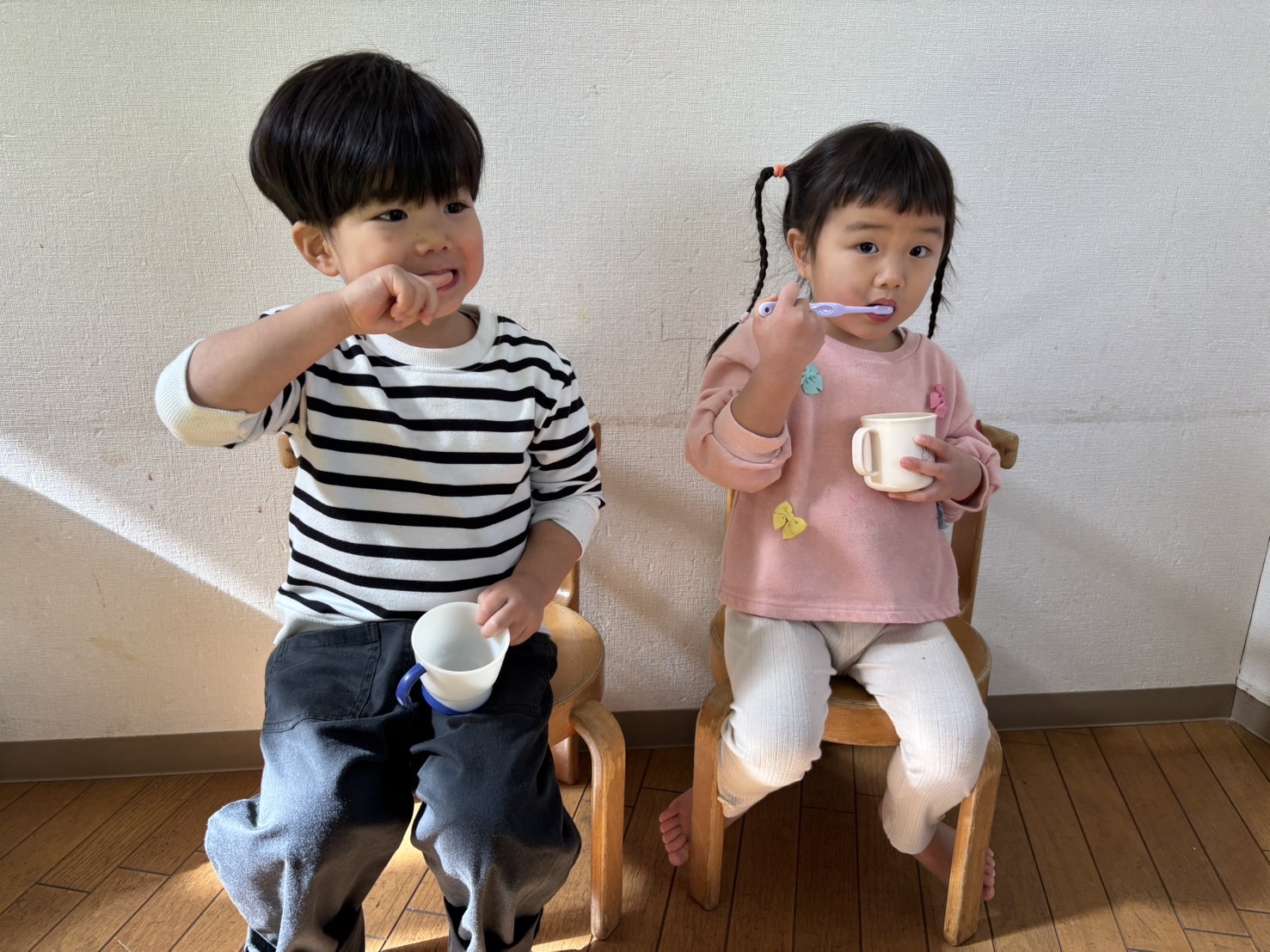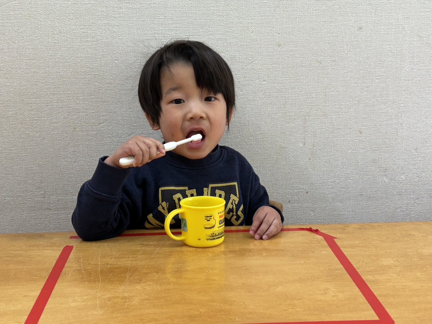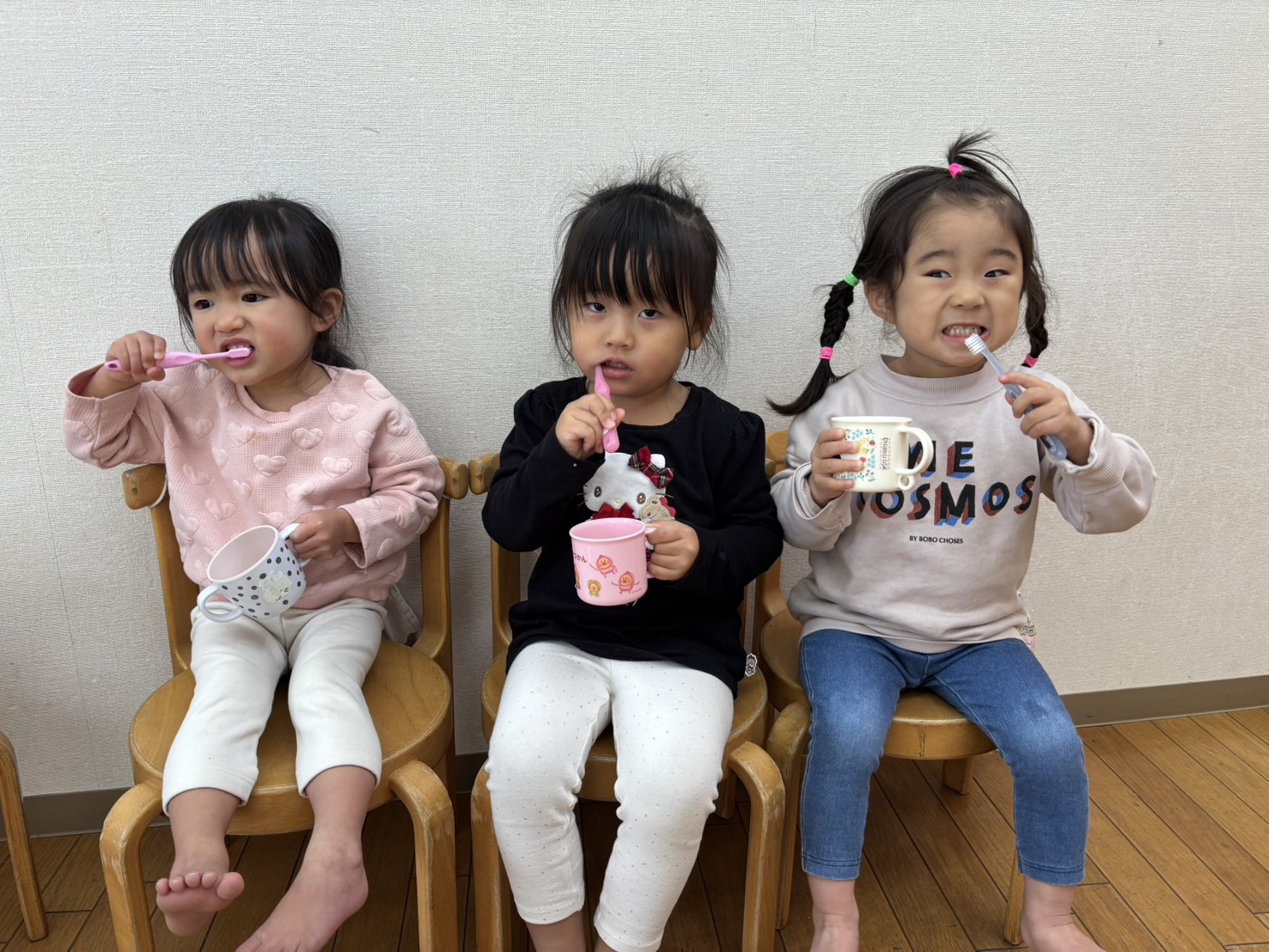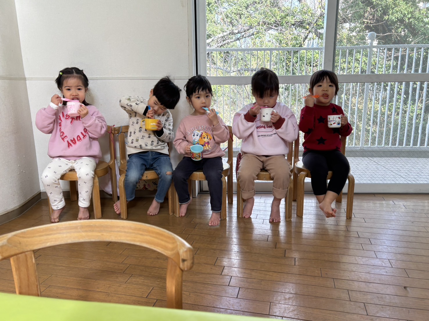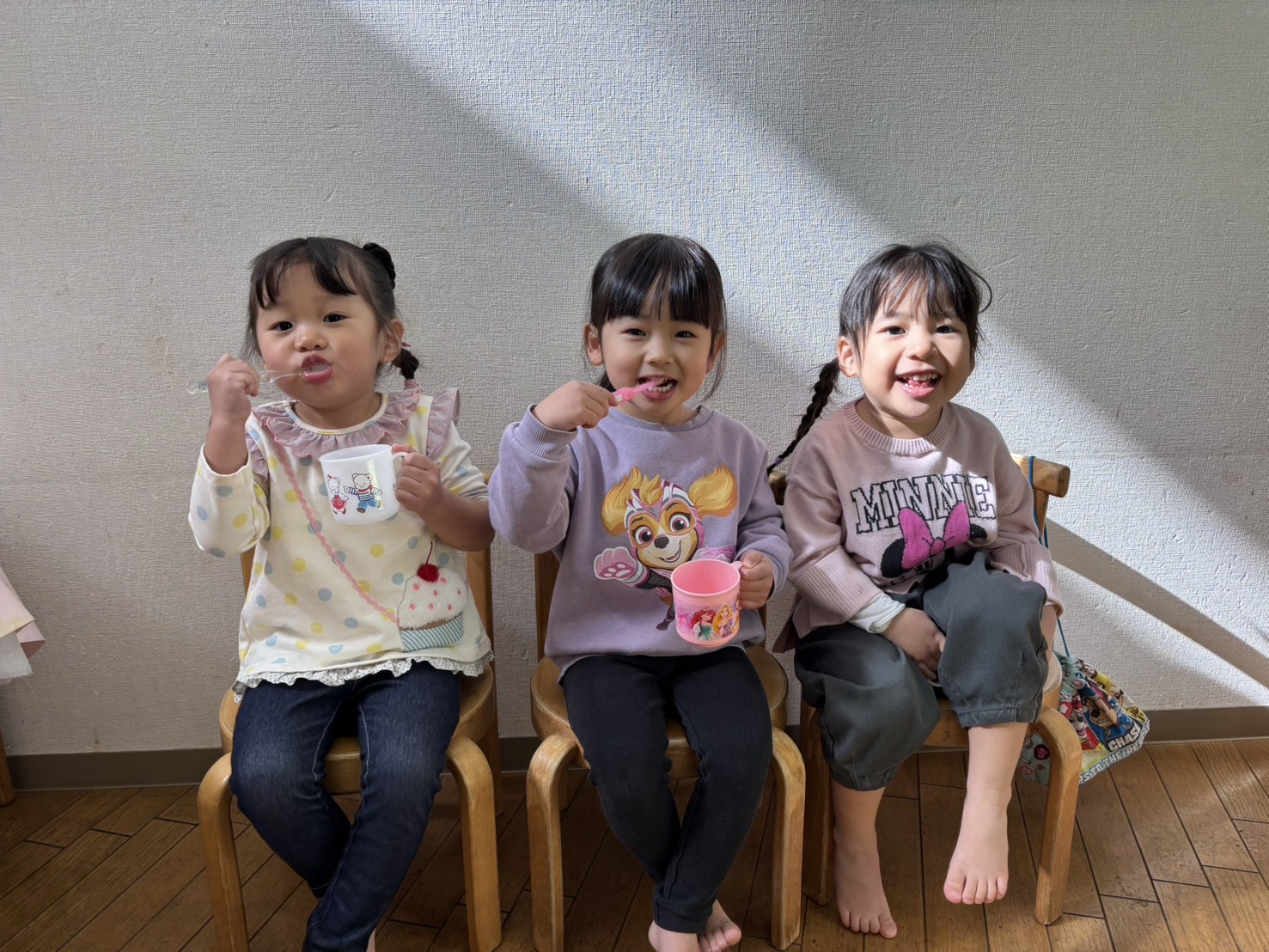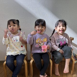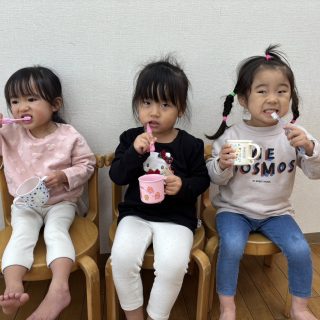 「歯磨きまだ?」「もう歯磨きしていい?」などやる気満々なゆり2くみさん![]()