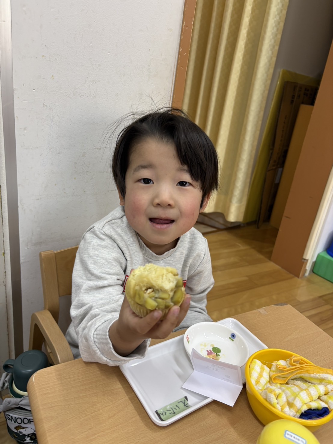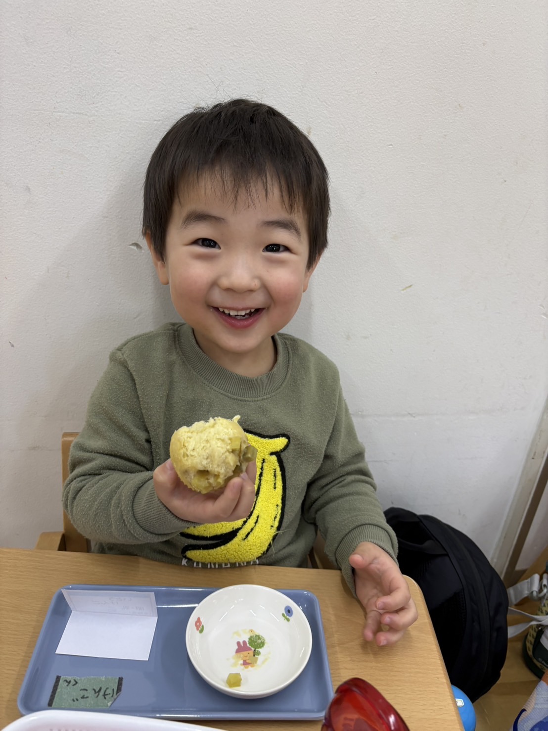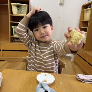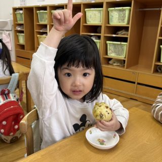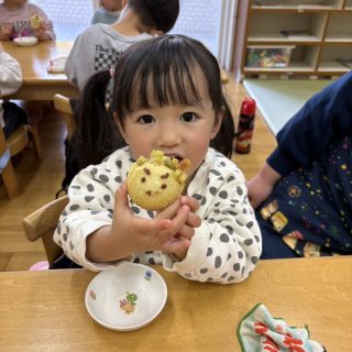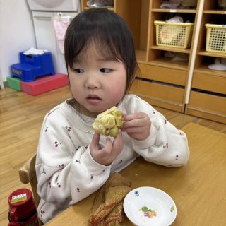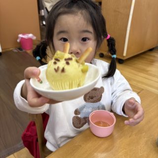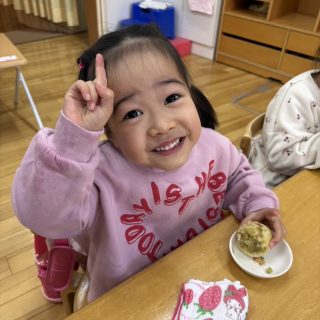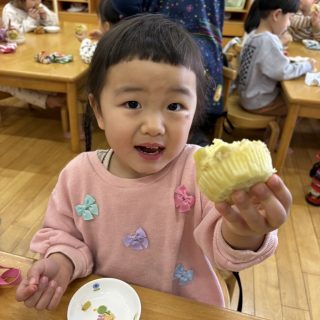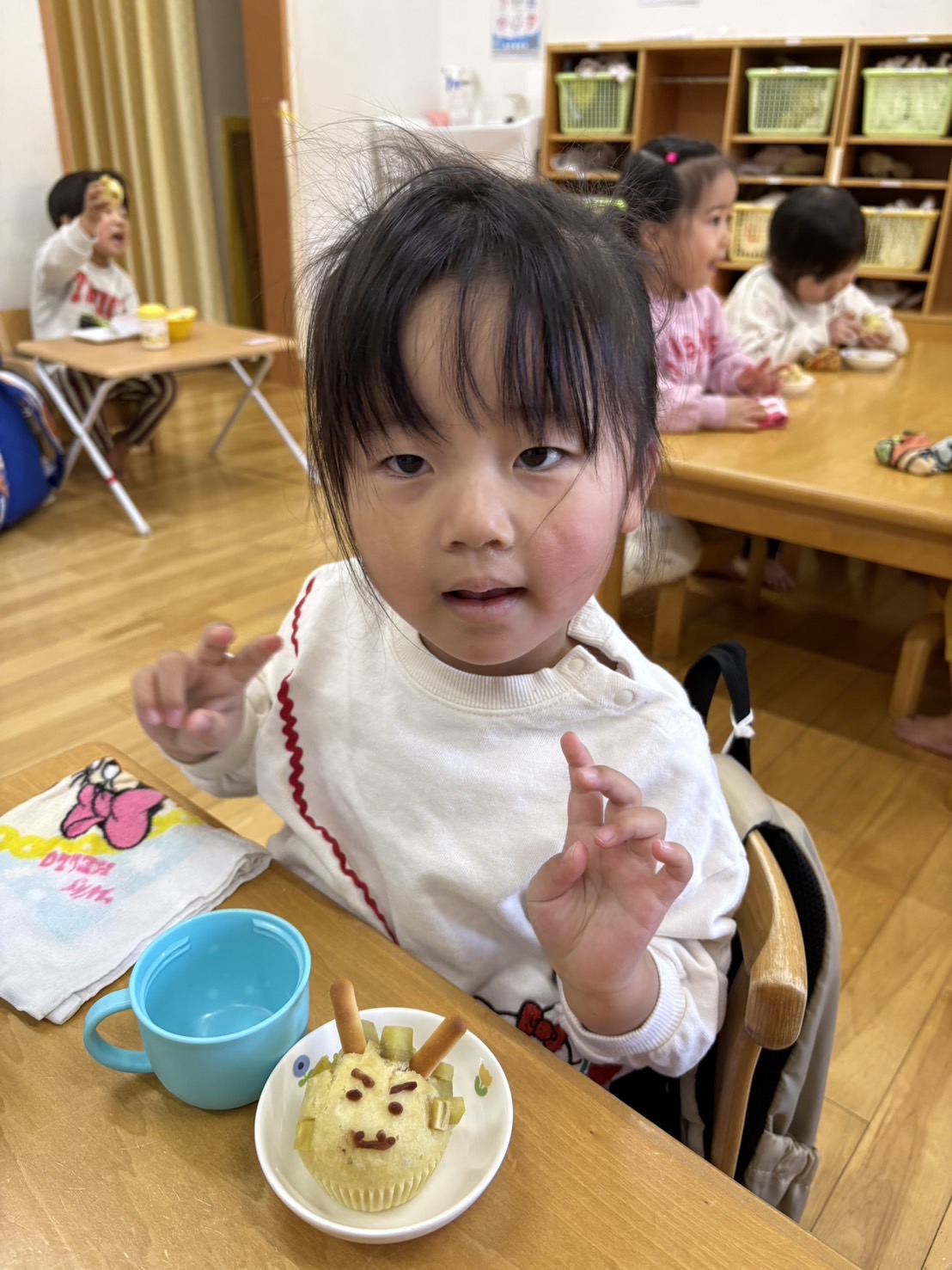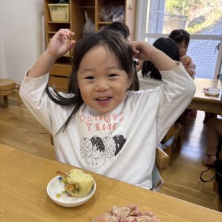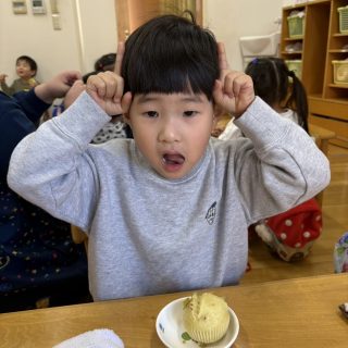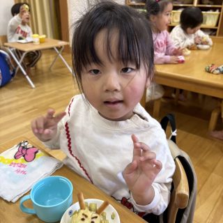 おやつを見ながら「おにだ~」「きょうおにきたね」などにこにこで食べていましたよ!