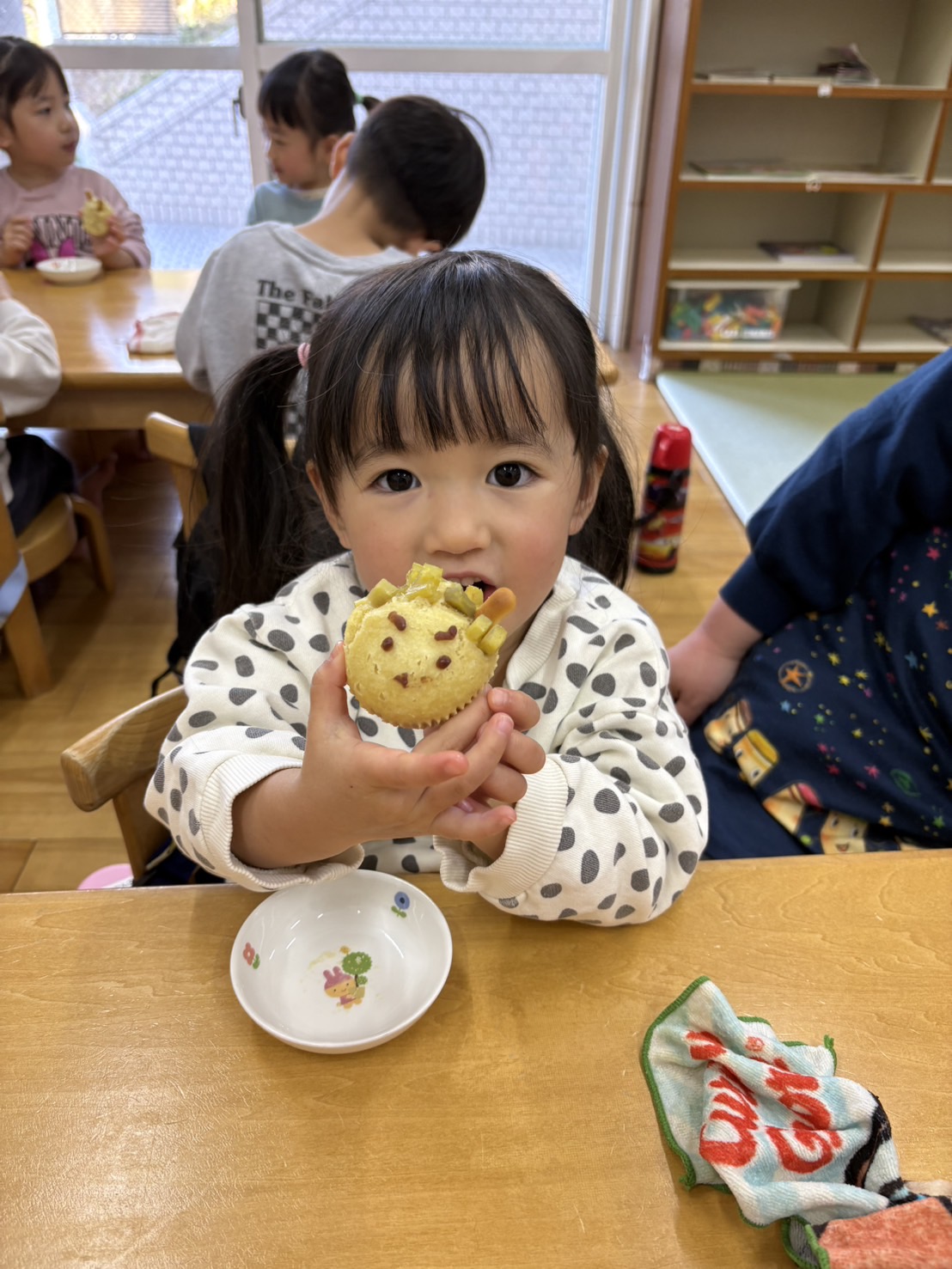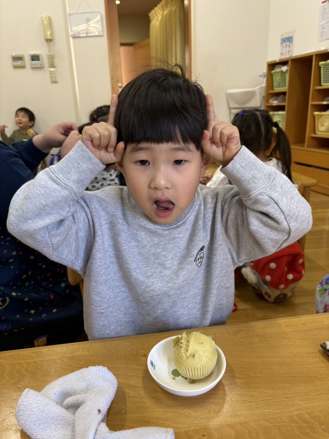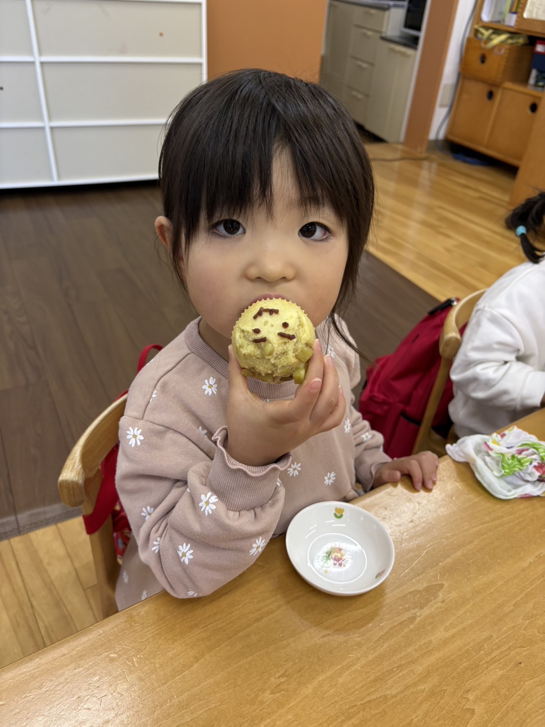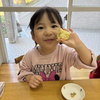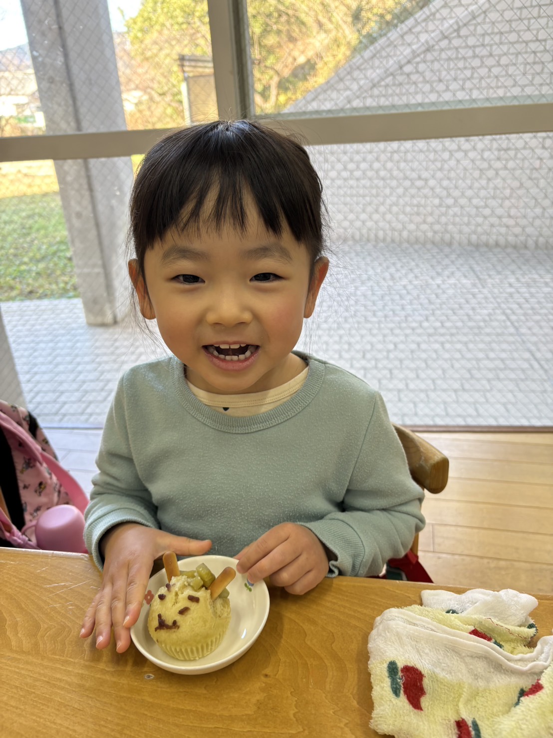おやつを見ながら「おにだ~」「きょうおにきたね」などにこにこで食べていましたよ!