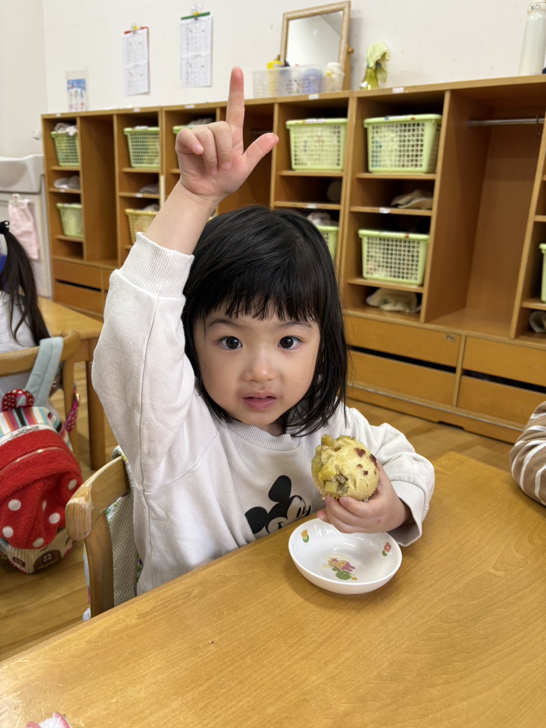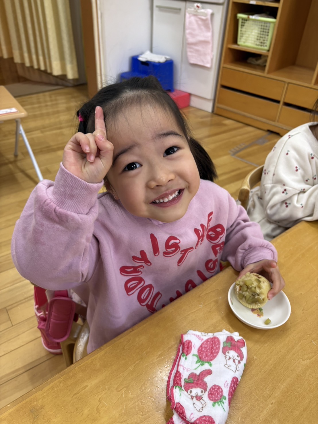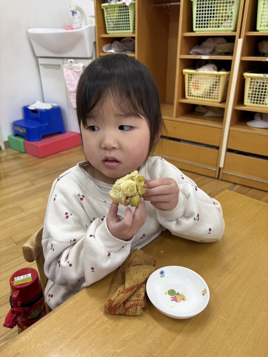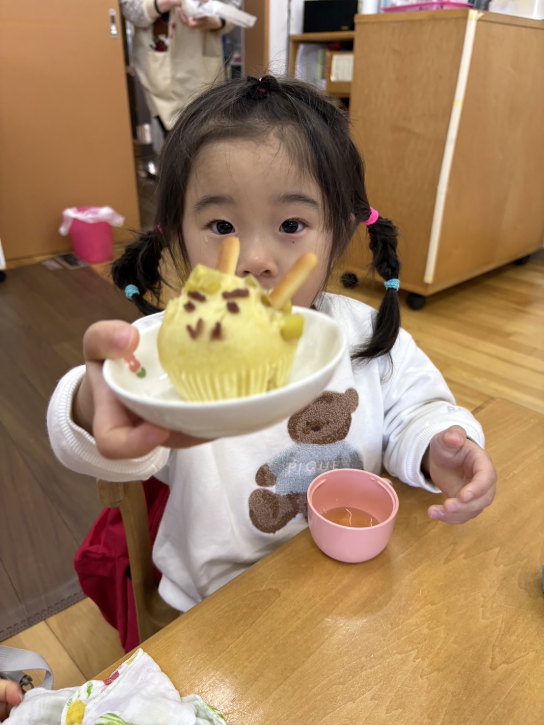おやつを見ながら「おにだ~」「きょうおにきたね」などにこにこで食べていましたよ!