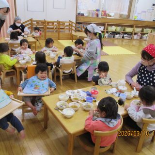 進級に向けて頑張ってます✨(0、1歳児) 今月のゆり2くみさんは?(2歳児) 紙作りに挑戦しました🔥(ばなな・イエローチーム) home 最新 2026 2025 2024 2023 2022 2021 2020 進級に向けて頑張ってます✨(0、1歳児) 2026-03-25 進級に向けて取り組んでいます。 さくら組の子ども達は、手すりを持って階段の上り下りやお友だちと手を繋いで歩く練習をしています。 1歳児のお部屋でさくら組、さくら1組みんなで給食を食べました ゆり1組は、2歳児の部屋で少し過ごし、給食セットを持って2階のランチルームで給食を食べました 気分はすっかり2歳児の子ども達でした 新年度を楽しく迎えられるようにしていきたいと思います✨ TOP