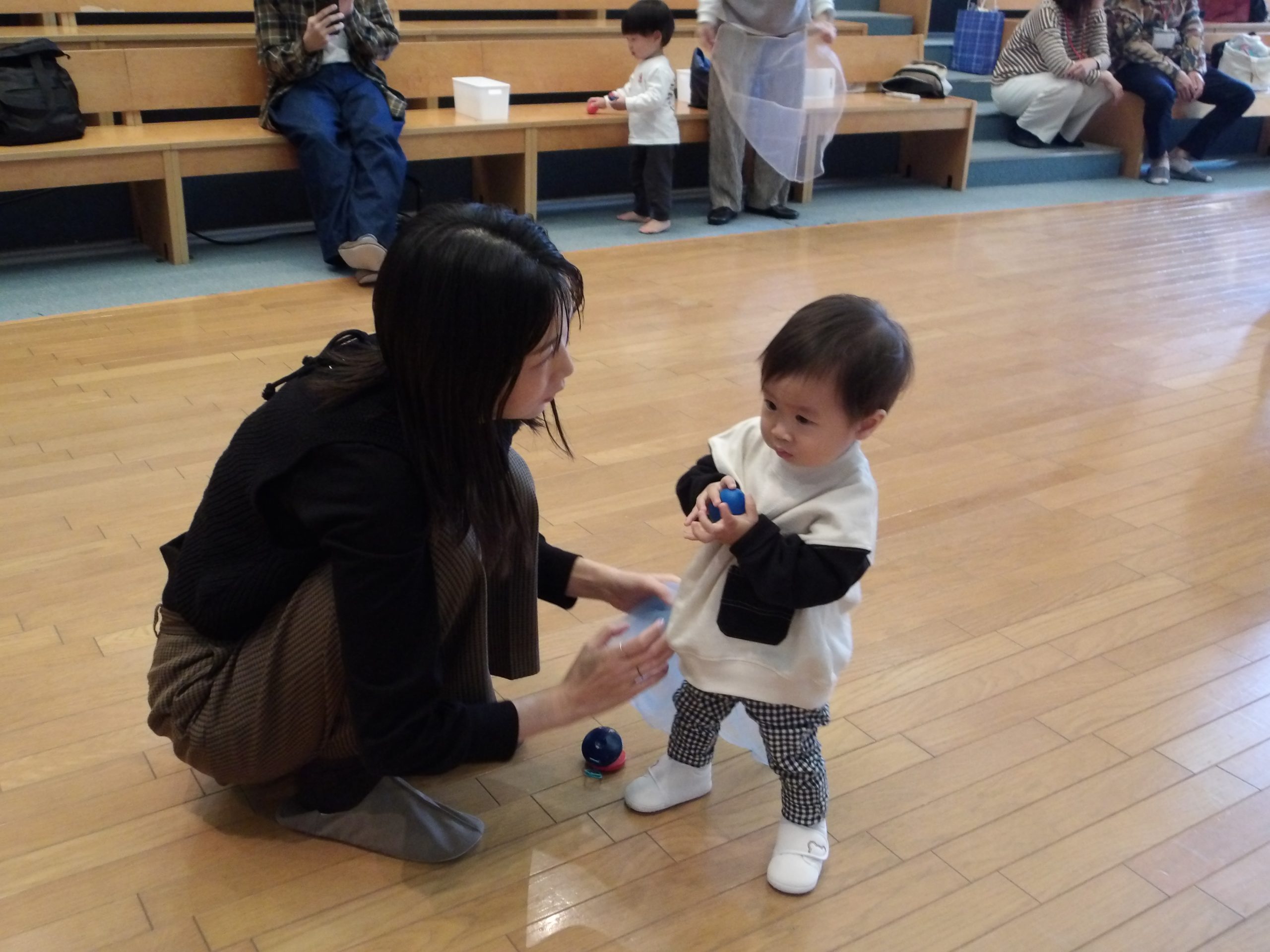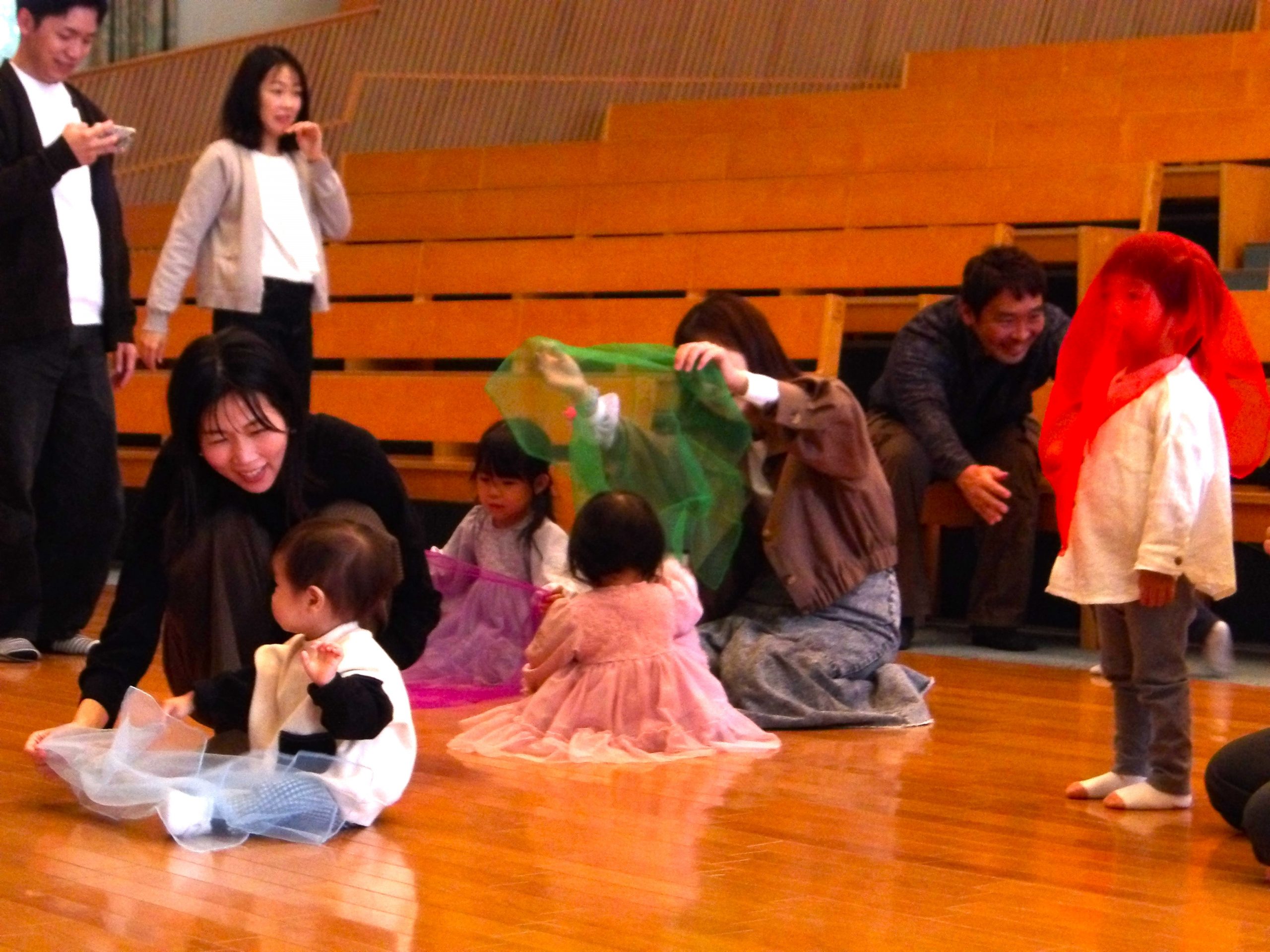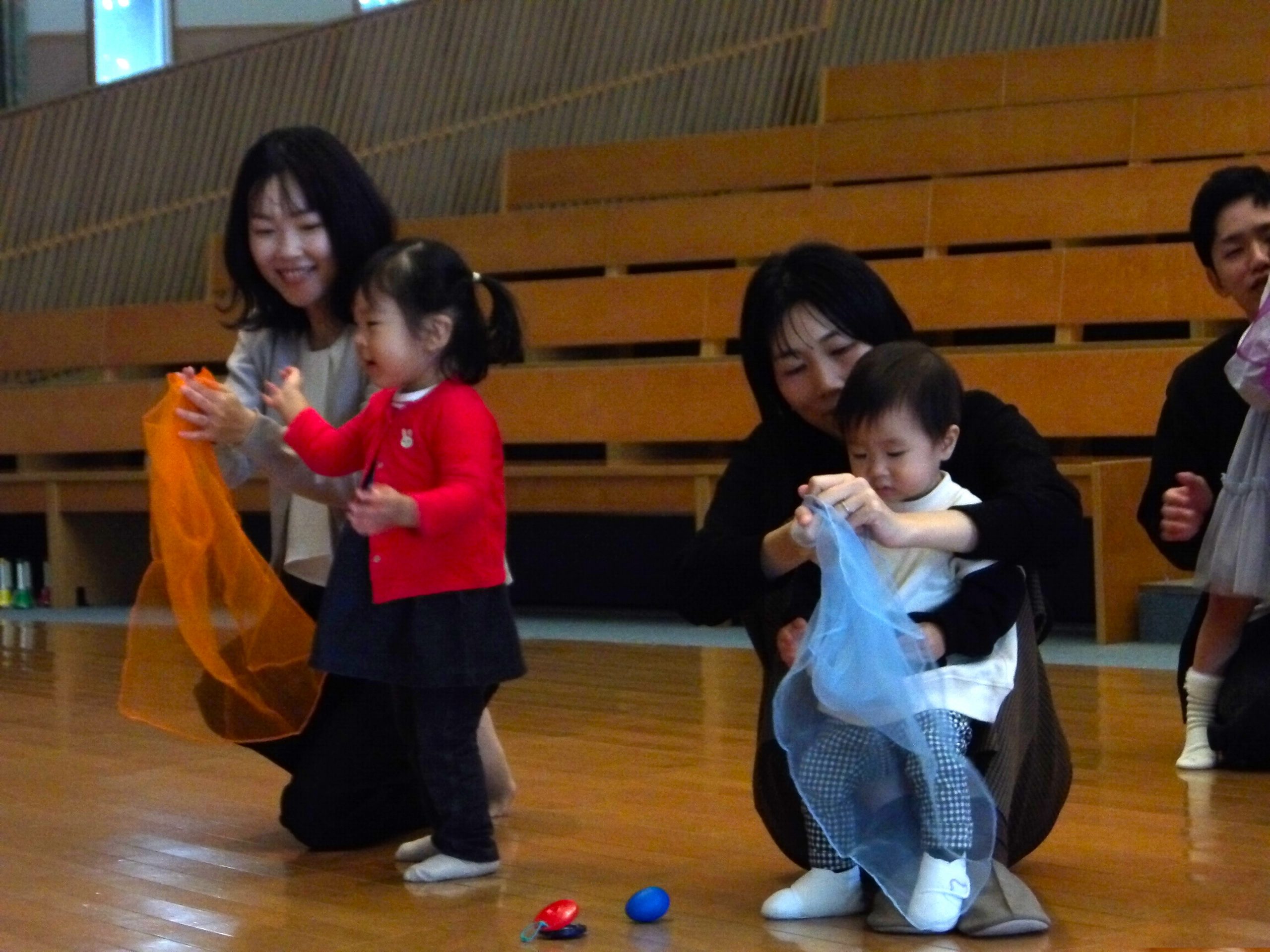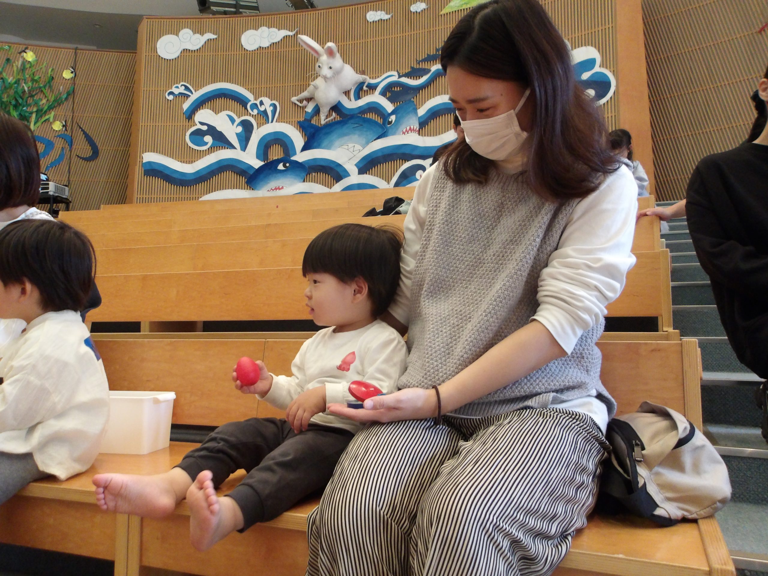 その後は、ピアノ演奏に合わせて親子でリズム遊びをしたり