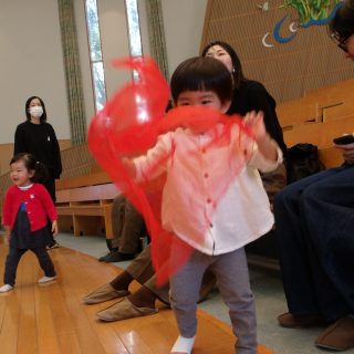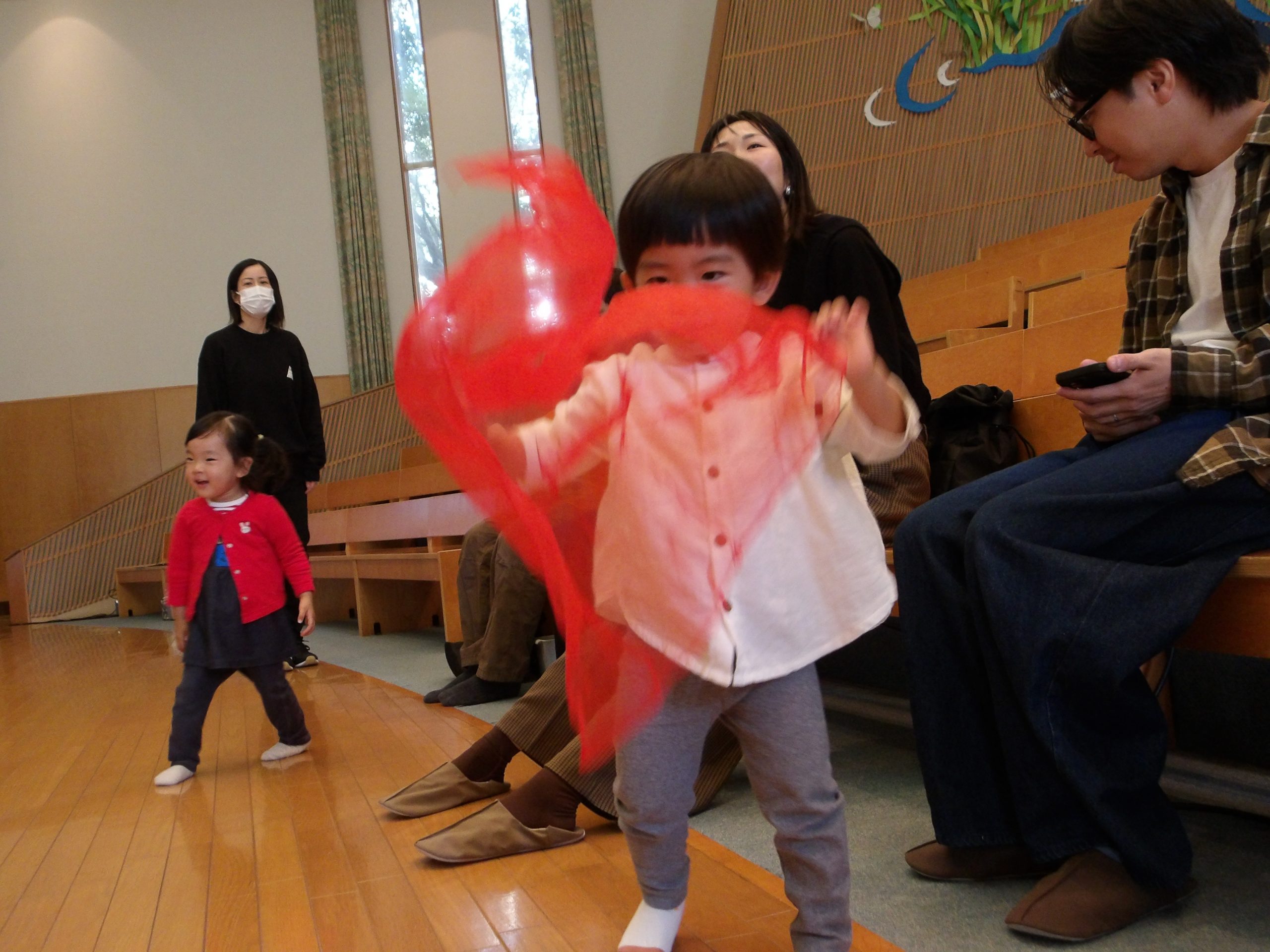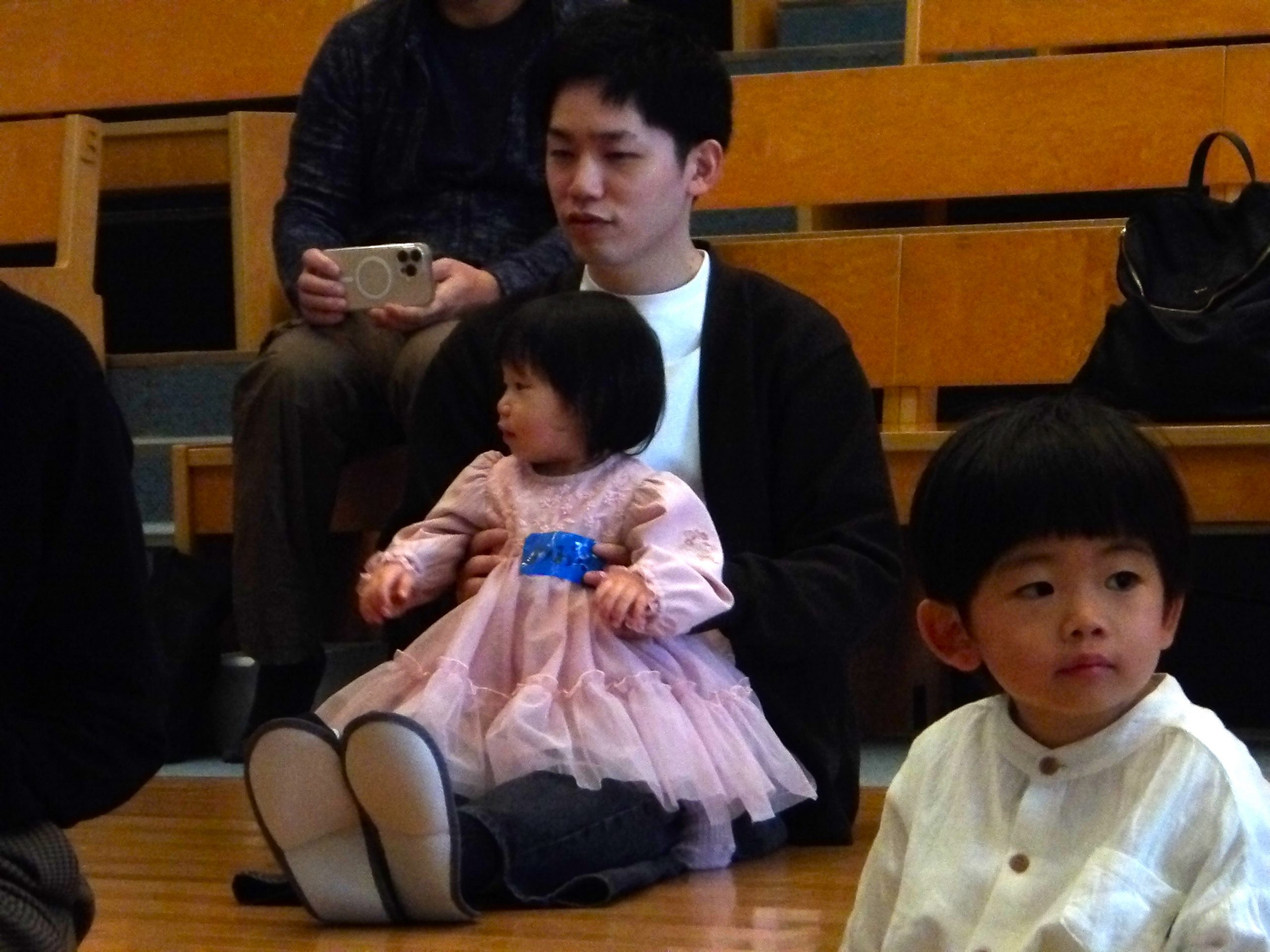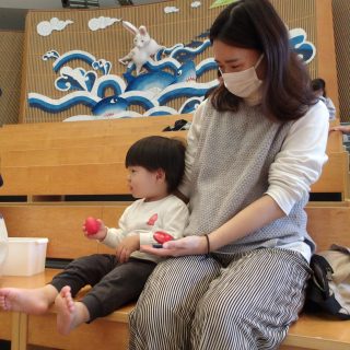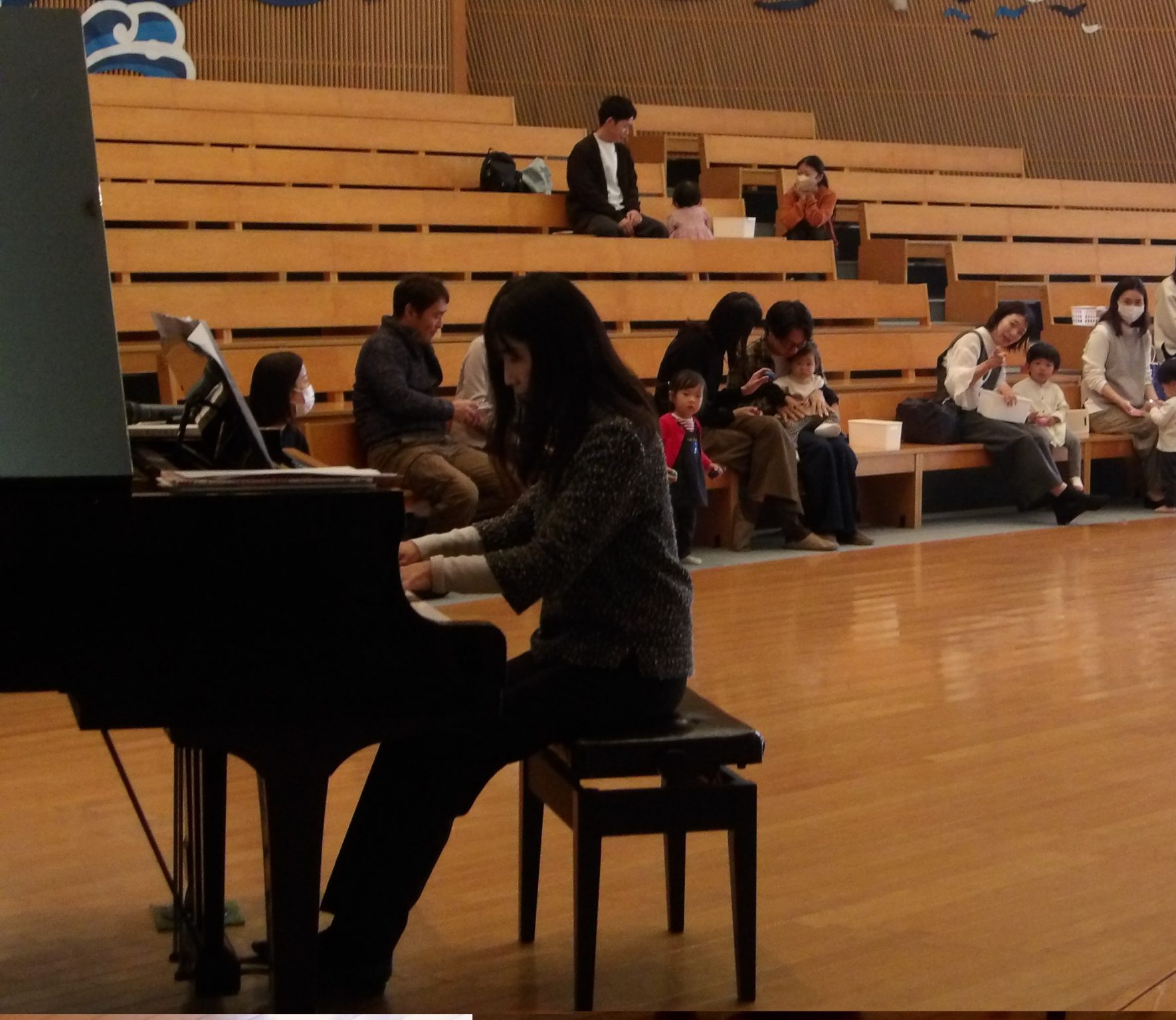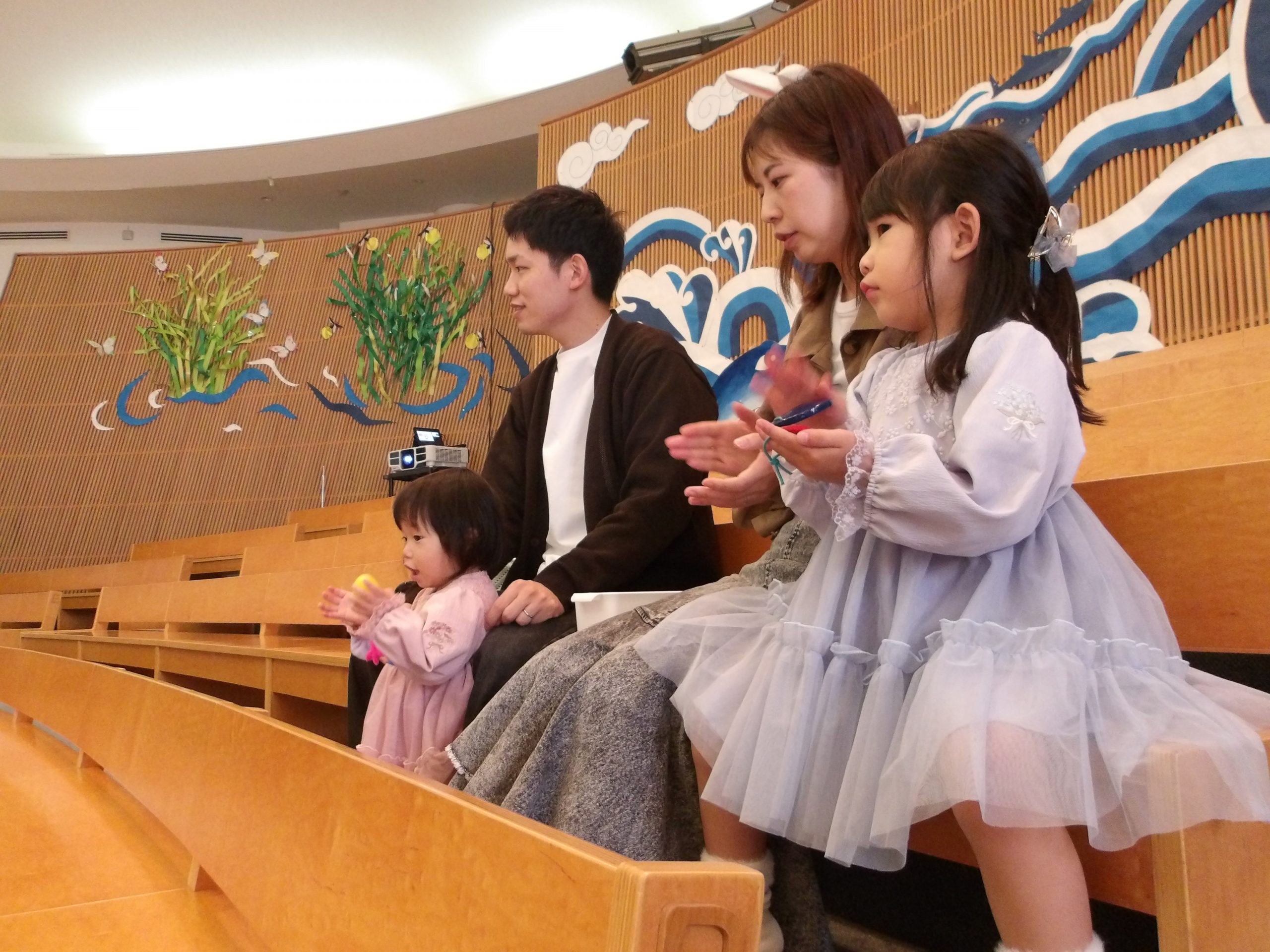 その後は、ピアノ演奏に合わせて親子でリズム遊びをしたり