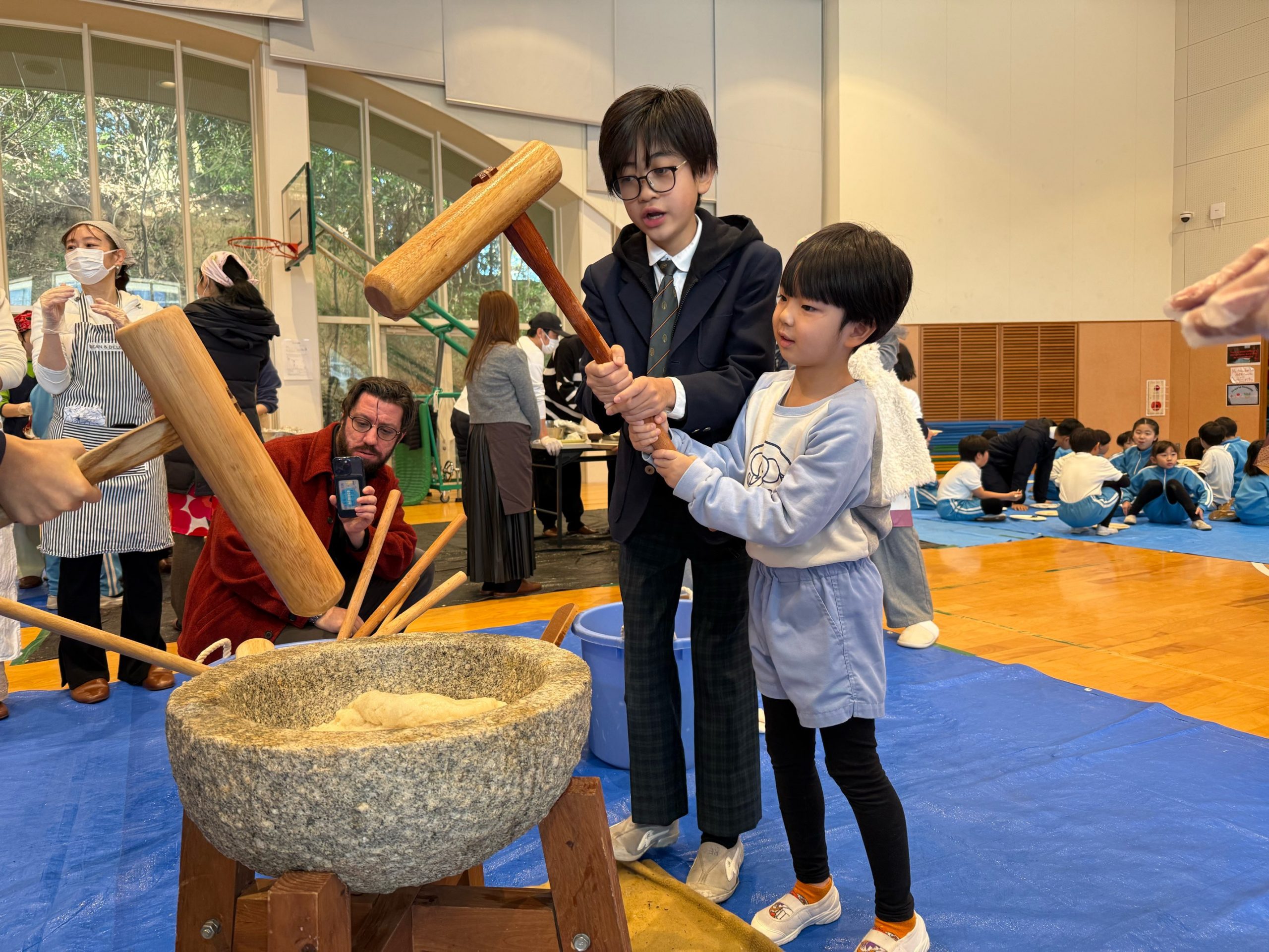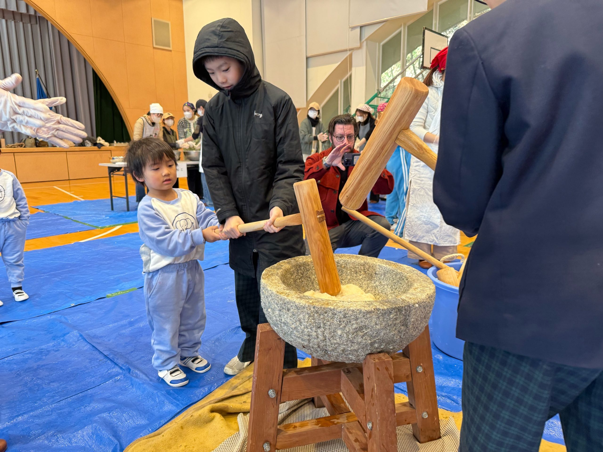 5年生に教えてもらい餅つきを頑張ってきましたよ![]()