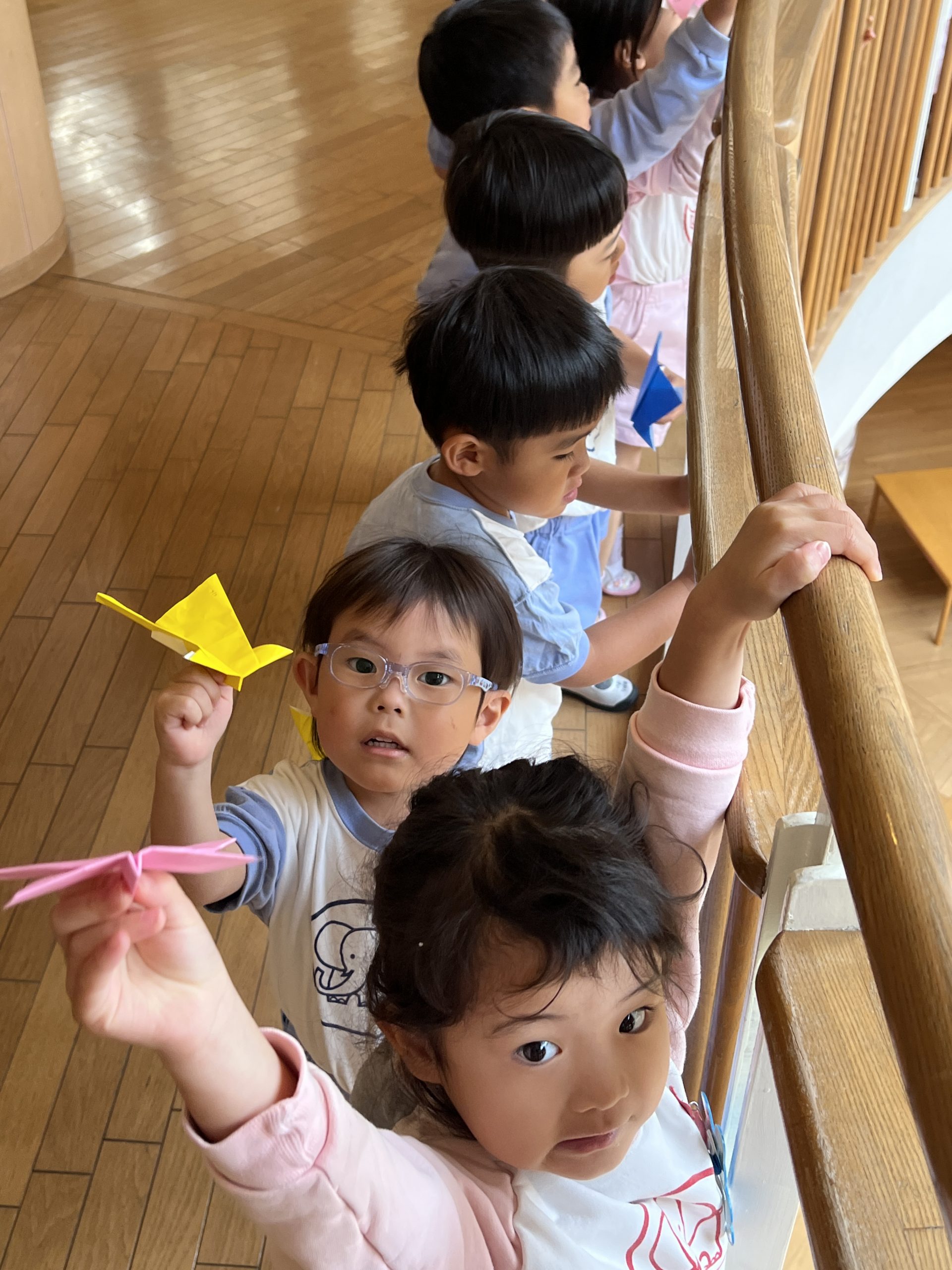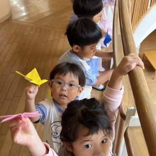 好きな色の折り紙を使って、紙飛行機を折りました。