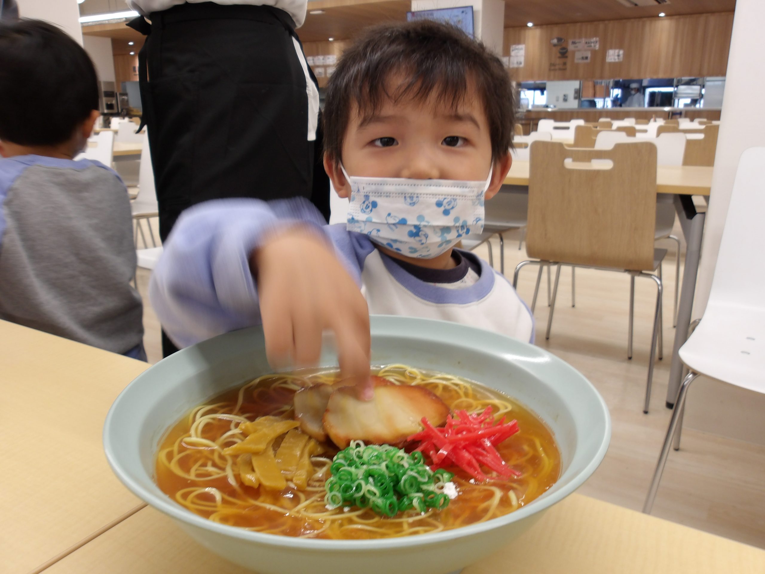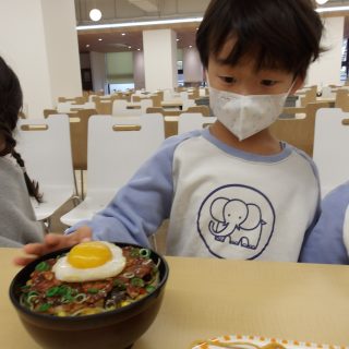 年少児は日本経済大学の食堂(レストラン)。