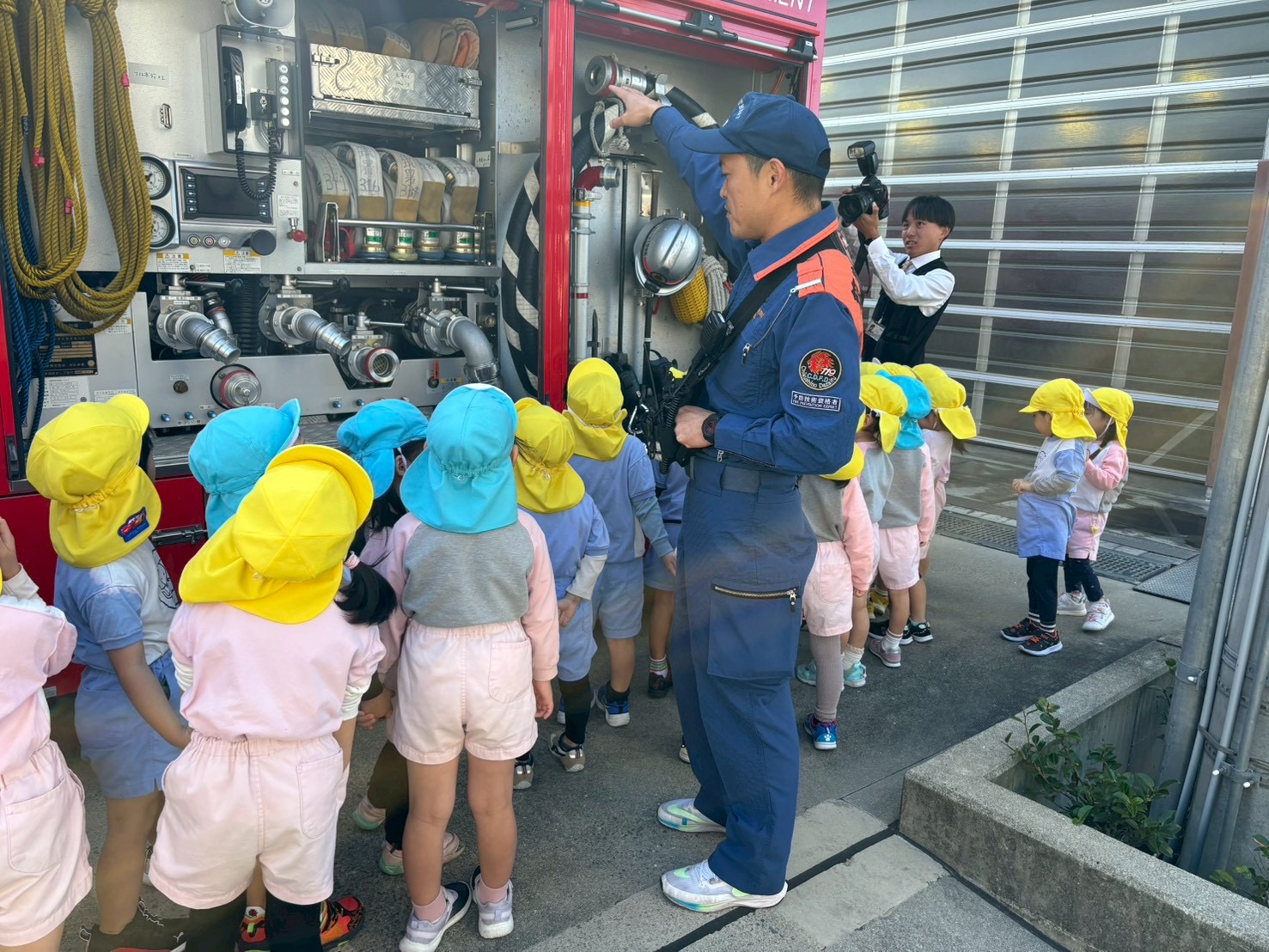消防署では、施設の中を見学し寝泊まりするところやトレーニングルーム