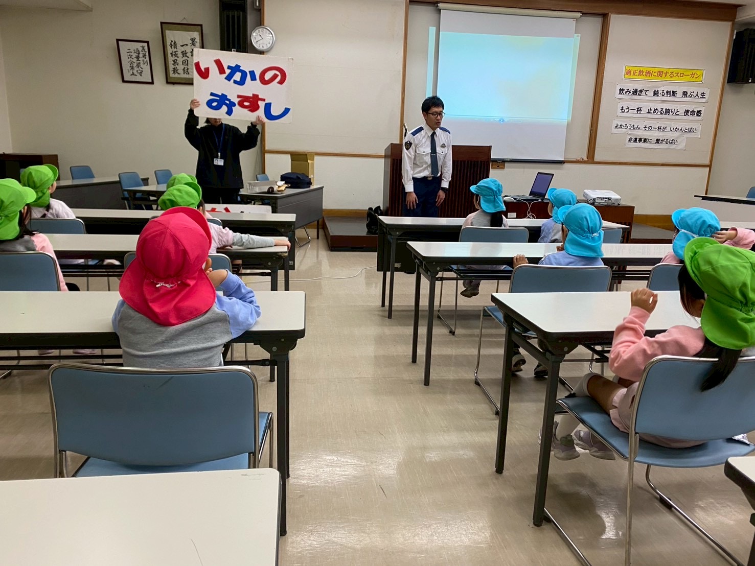 警察署では、「いかのおすし」ビデオを見ました。