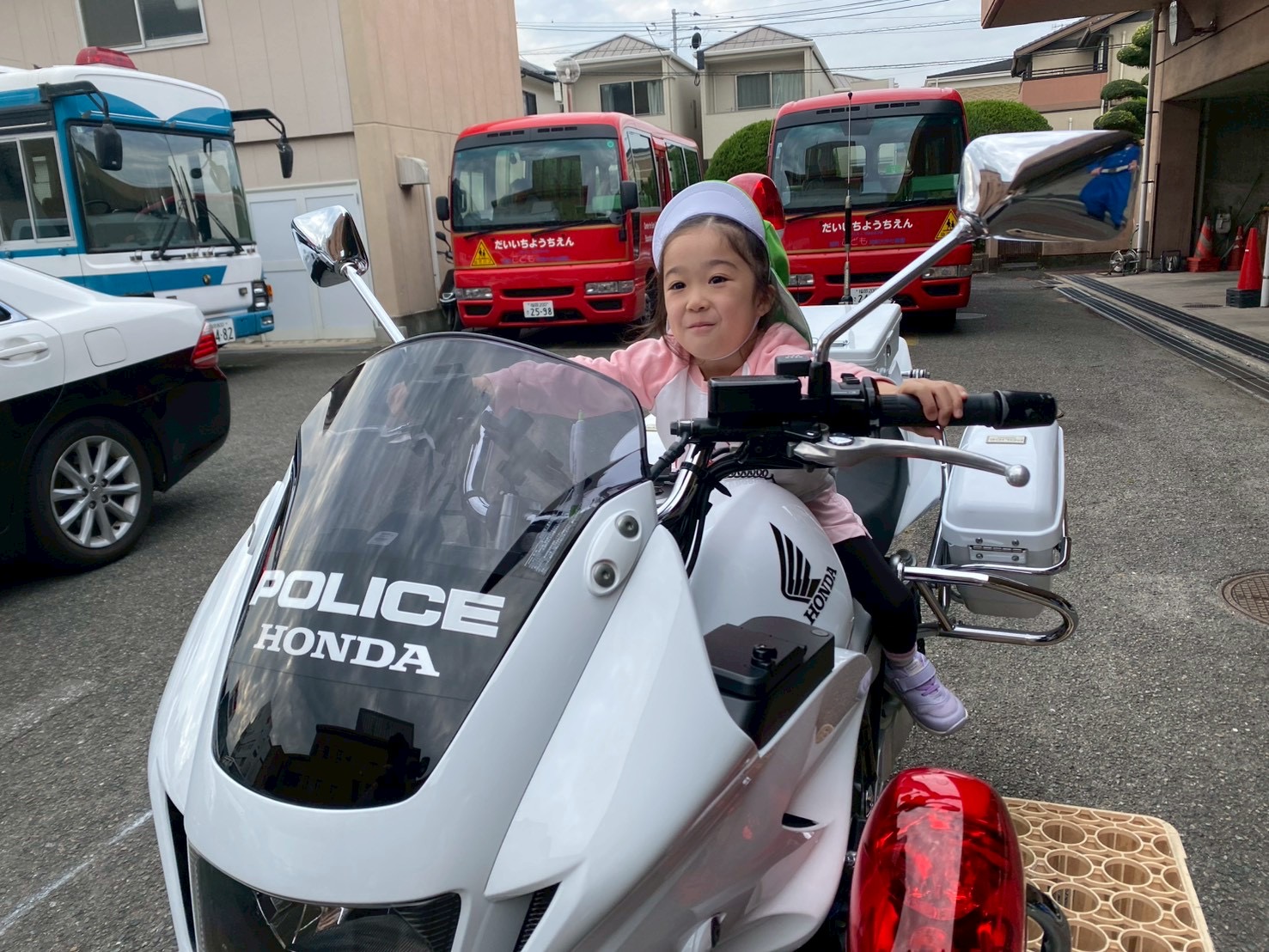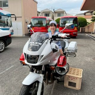 その後は白バイやパトカーに乗ったりパトカーの