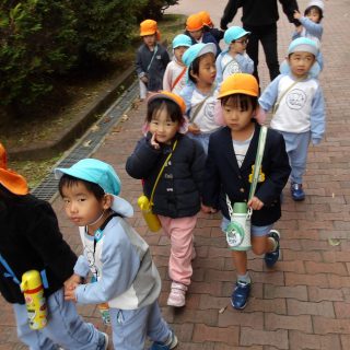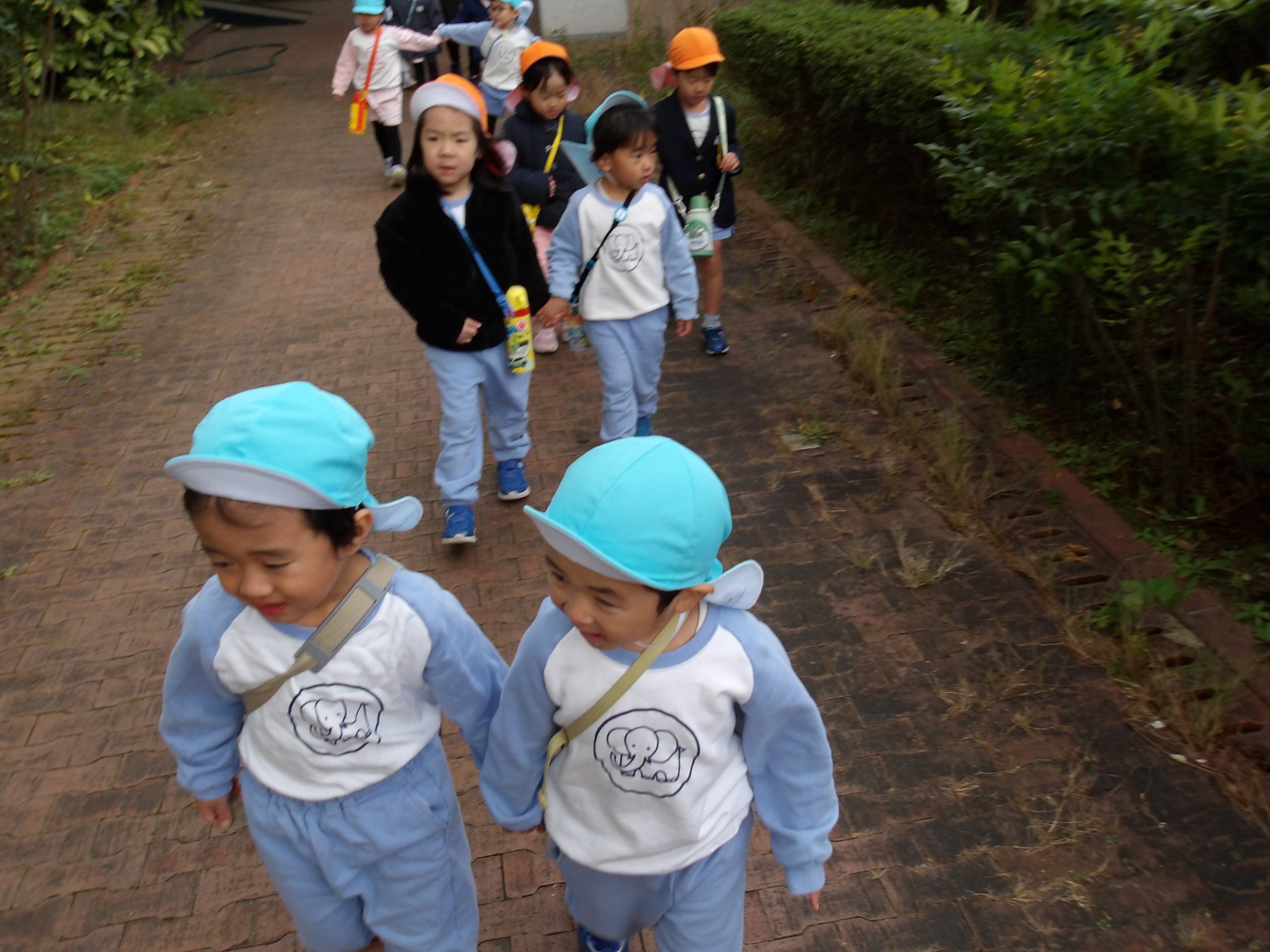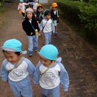 イングリッシュガーデンへお散歩に行く予定でしたが、リンデンホール小学部のお兄さん・お姉さんがマラソン大会をしていたので