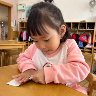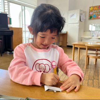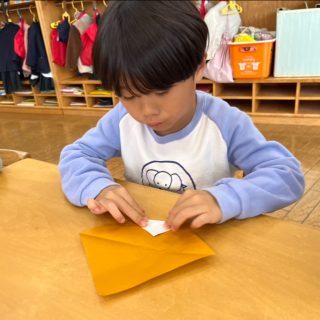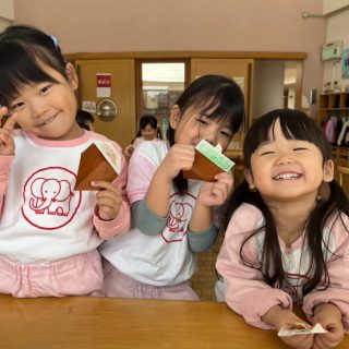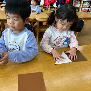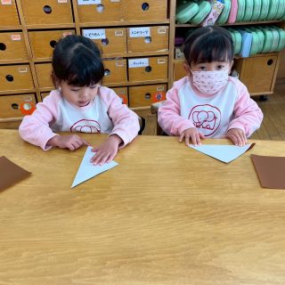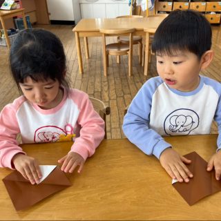 そして今日はお散歩で見つけられなかった どんぐり を折り紙で作りましたよ![]()