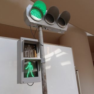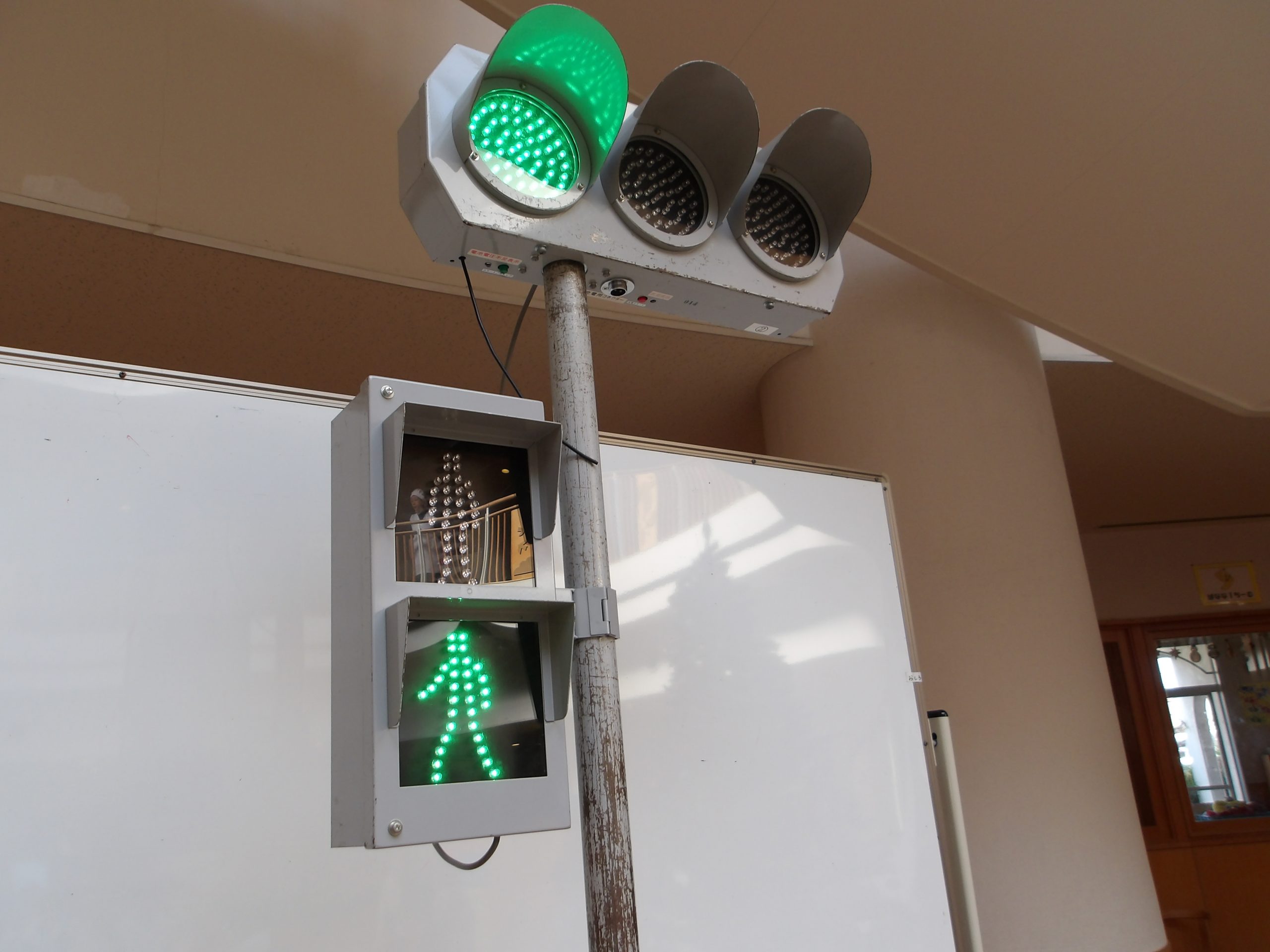 優しい講師の先生のお話を聞きながら、信号機の色の意味や横断歩道の渡り方など