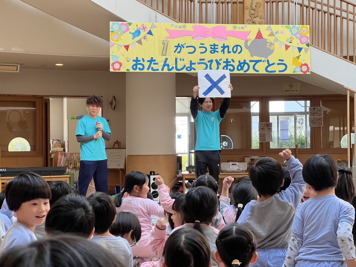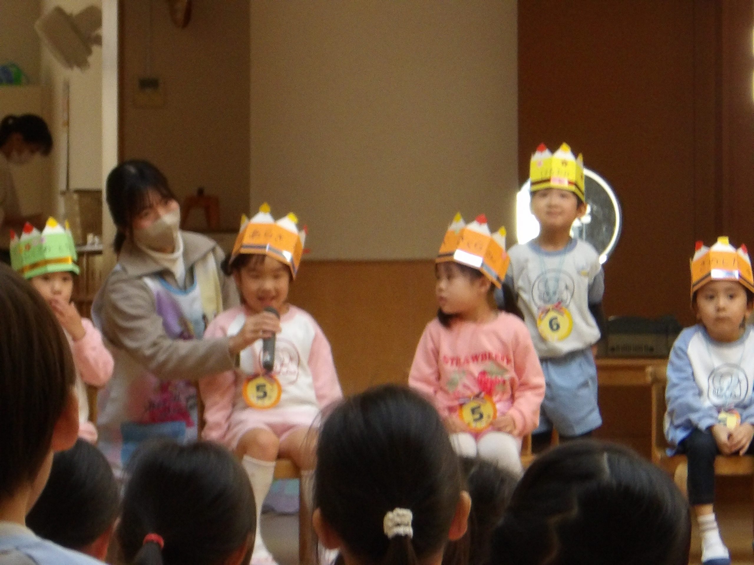 お名前呼びをして、年少・年中さんには「好きな食べ物」、年長さんには「将来の夢」を聞きましたよ!